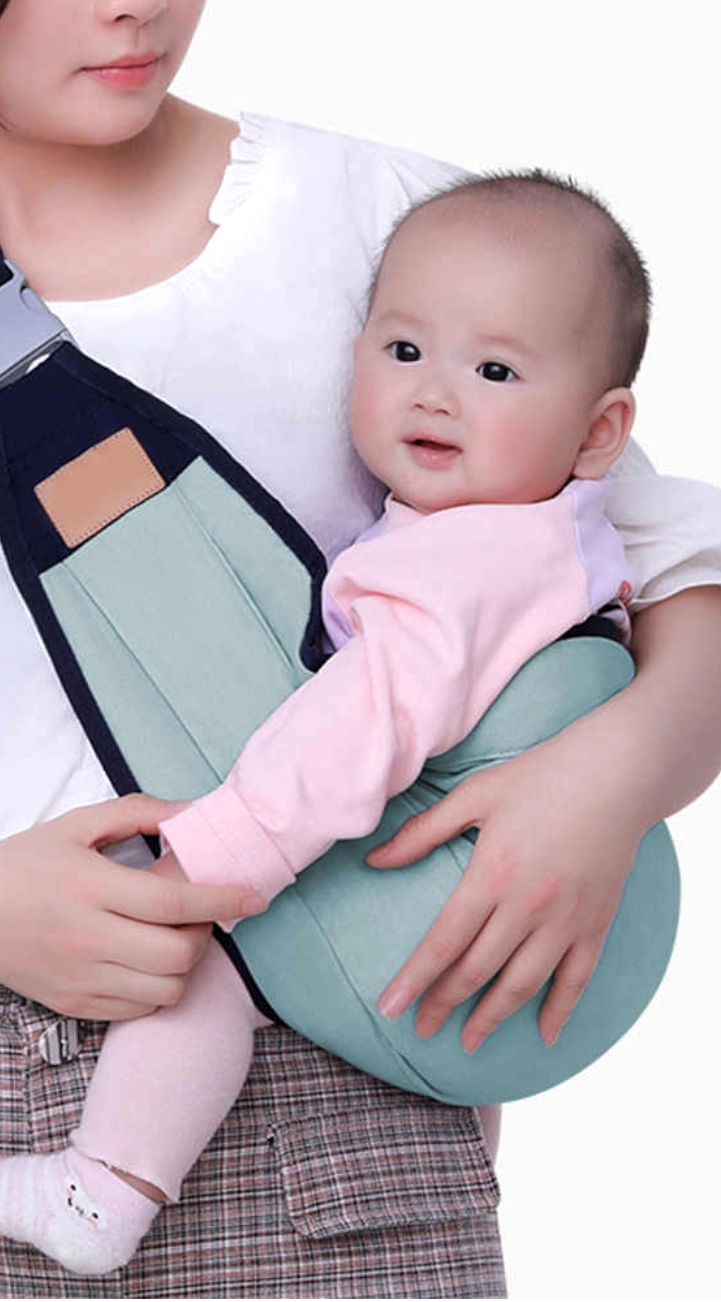 El porta bebé está disponible en colores: rosado, gris y verde.
