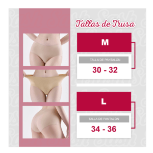 Para la elección de la talla, debes de guiarte de la misma talla de brasier que sueles utilizar.